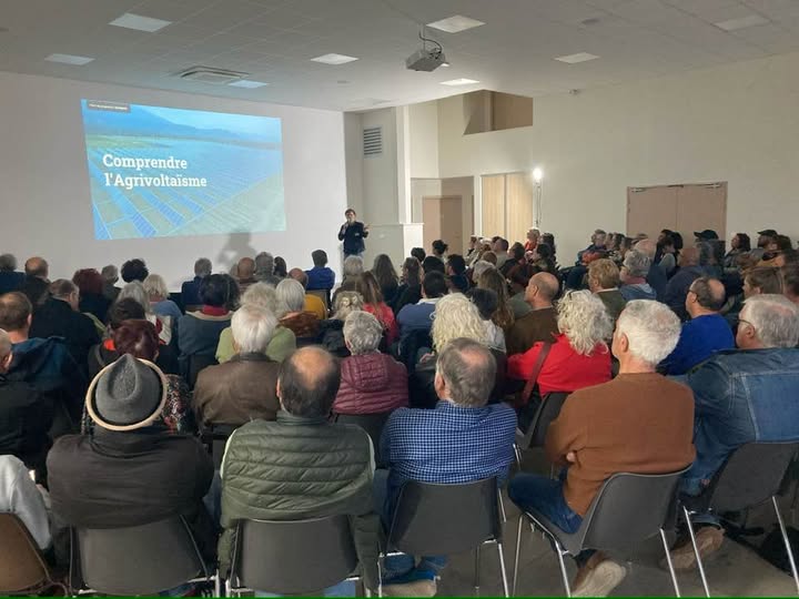 Nous étions 150 personnes hier soir, lundi 14 avril 2025 à Rieux Volvestre pour échanger sur les dérives du photovoltaïque industriel sur nos terres agricoles et naturelles.